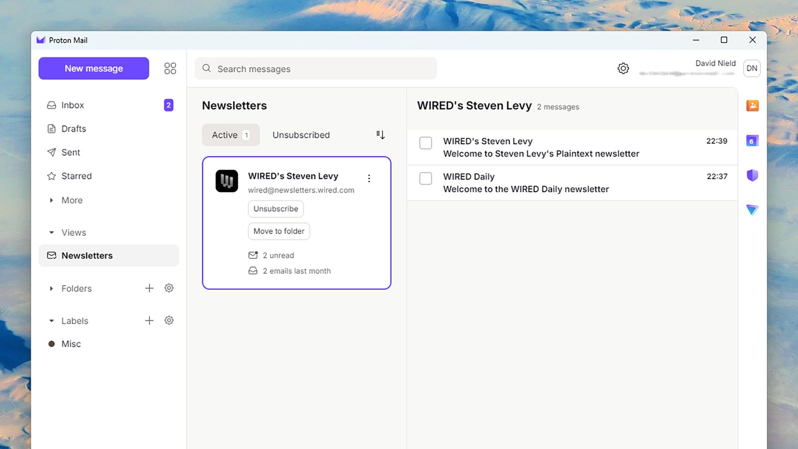 There’s now a dedicated newsletter view in Proton Mail.Courtesy of David Nield