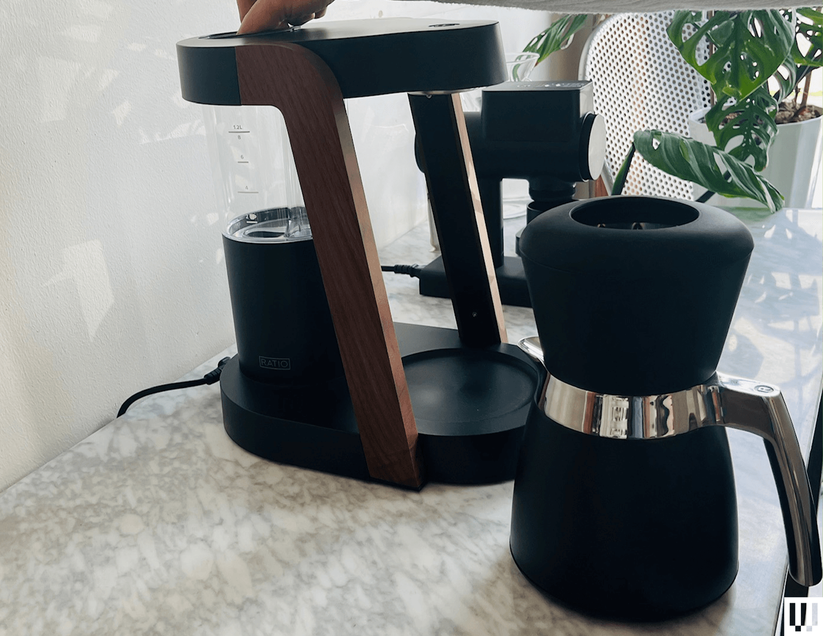 Ratio Eight Series Two for $799: Like its predecessor—the hourglass-shaped, pour-over-inspired, original Ratio Eight—the Eight Series Two is beautiful. It stands stately atop the counter like a modern-minimalist sculpture, a sinuous graduate from a design museum. Like its counterparts from Portland-based Ratio, the Four and Six (both top picks), the Eight’s carefully modulated temperature settings and Fibonacci-inspired showerhead offer some of the most full extraction of any drip coffee makers I’ve tested—enough so that often I grind a little coarser to calibrate. Indeed, it’s arguable the Eight is the culmination of Ratio’s efforts to fully and evenly evince flavor from finicky light-roast coffees. What’s more, the device is designed so that hot water does not come into contact with plastic, dodging worries about microplastics. This achievement comes at cost, of course. The locally hewn wood, the pleasant heft of the stainless steel brewing chamber, the glass tubing and silicone pipe connectors, the borosilicate glass or sturdily stainless steel thermal carafe all add up to an $800 price tag (or $900 with a thermal carafe) that’s double the price of our top picks. For many, avoiding microplastics while enjoying that full-tasting drip coffee will always be worth it—though we kept Ratio’s Six as our thermal carafe recommendation largely because of cost. Note one design quirk, also: The water reservoir is located above the heating element, and maintains condensation on its walls unless you take the lid off the reservoir.