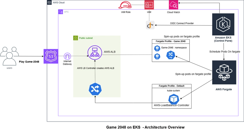 Deployed the 2048 game on AWS EKS with Fargate, using Helm to install the AWS Load Balancer Controller, and integrated OIDC Connect provider with EKS for secure service account authentication.