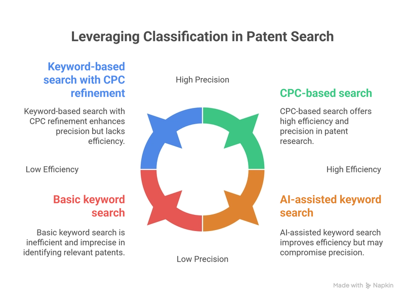 Using classification in patent search provides advantages that keyword-only searches often miss: