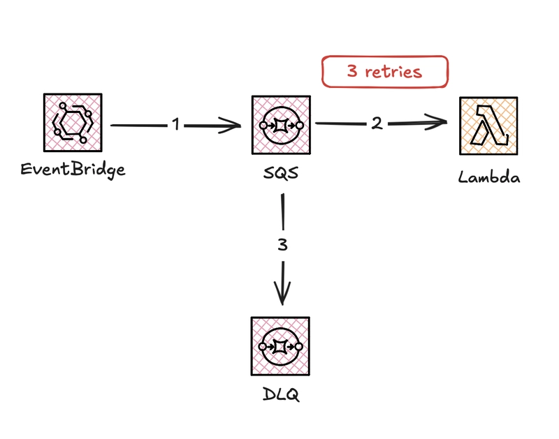 - If validation fails, the event is retried and eventually sent to a DLQ for inspection (e.g.,