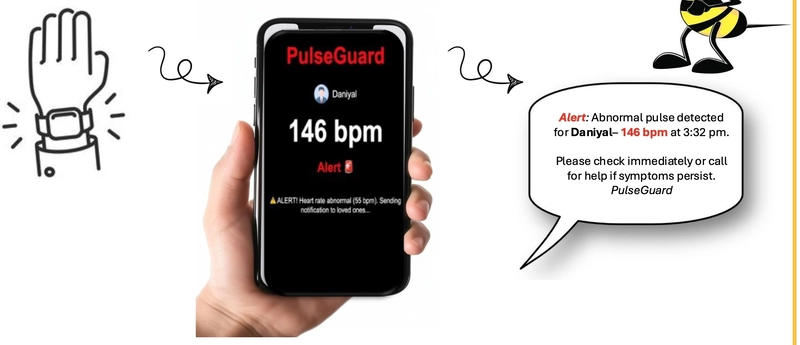 When an abnormal pulse is detected, AWS Lambda processes the data and triggers AWS SNS to send instant notifications to the loved ones’ phones or emails. Meanwhile, CloudWatch tracks all alerts and ensures the entire pipeline from the wristband to notification runs smoothly and reliably.