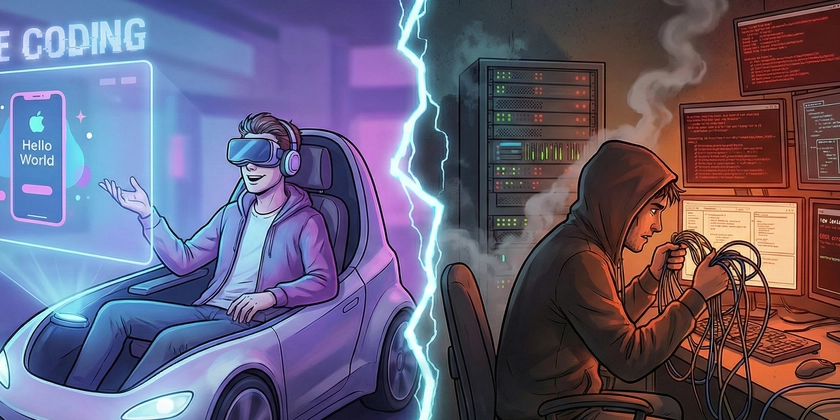 On one side, you have people who know how to read that error message, update the package.json, and move on. On the other side, you have the “Vibe Coders” who are now completely stuck. They paste the error back into the AI. The AI apologizes and gives them a different wrong solution. They go in circles for four hours.